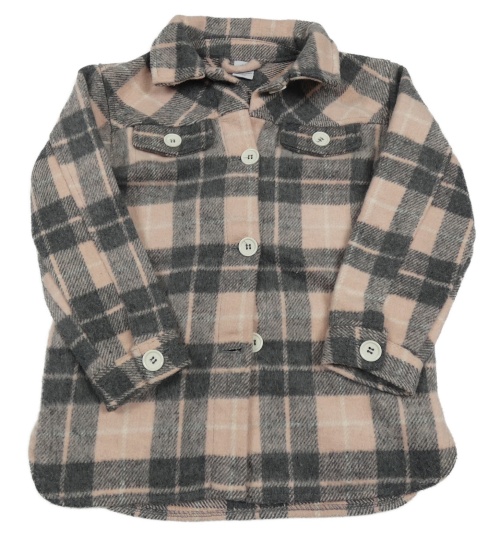 Ružovo-tmavošedo-smotanová kockovaná vlnená košeľová bunda Kiki&Koko