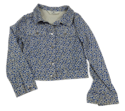 Smetanovo-modrá kvetovaná rifľová crop bunda H&M