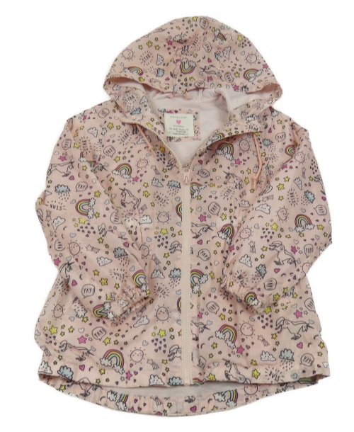 Svetloružová šušťáková jarná parka s jednorožci, duhami a kapucňou Primark