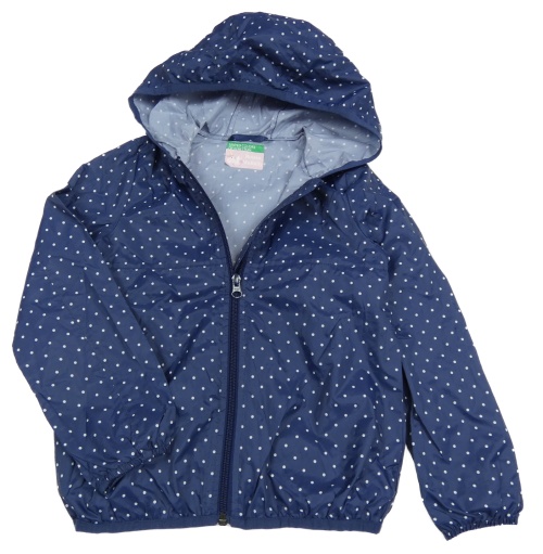 Tmavomodrá bodkovaná á šušťáková nepromokavá bunda s kapucňou Benetton