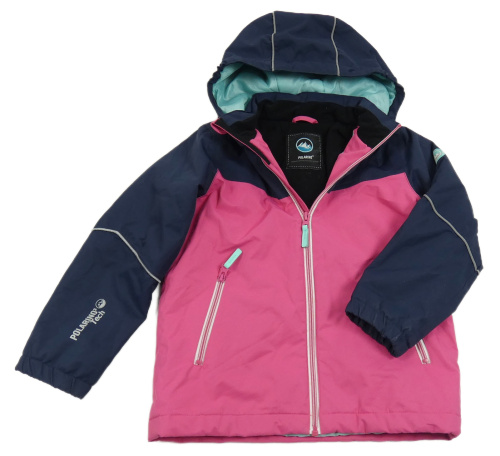 Tmavomodro-ružová šušťáková funkčná zimná lyžiarska bunda s kapucňou POLARINO