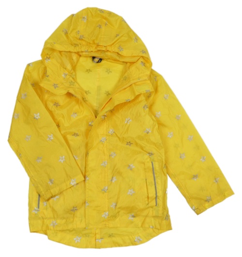 Žltá šušťáková vetrovka s hviezdami a kapucňou Hema