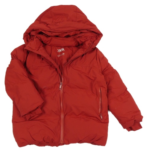 Červená šušťáková zimná bunda s nášivkou a kapucňou ZARA
