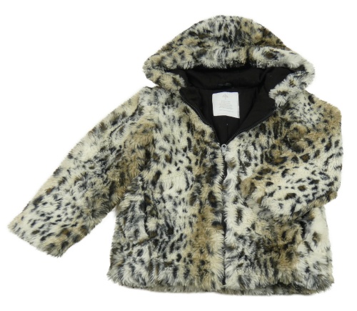 Smetanovo-hnedo-čierna vzorovaná kožušinová podšitá bunda s kapucňou Matalan