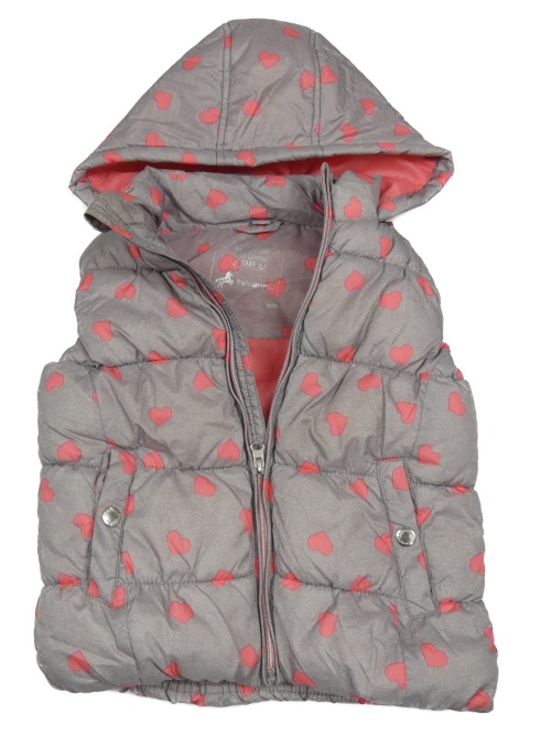 Sivo-ružová šušťáková zateplená vesta so srdiečkami a kapucňou C&A