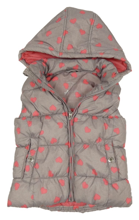 Sivá melírovaná šušťáková zateplená vesta so srdiečkami a kapucňou C&A