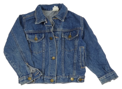 Modrá rifľová crop bunda s golierikom
