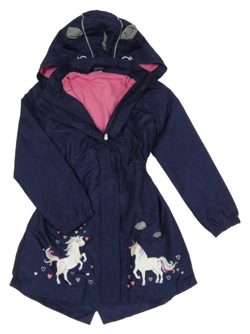 Tmavomodrá šušťáková jarná parka s jednorožcami a kapucňou Kiki&Koko