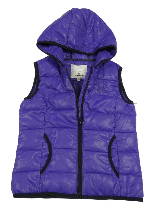 Fialová šušťáková zateplená vesta s výšivkou a kapucňou Tom Tailor