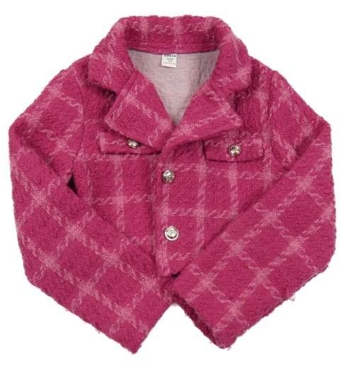 Růžový kostkovaný úpletový crop kabátek shein