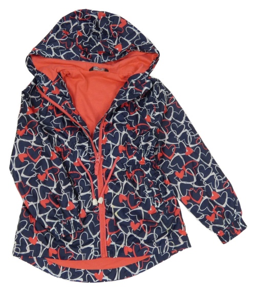 • Tmavomodro-bielo-červená šušťáková jarná bunda so srdiečkami a kapucňou Primark