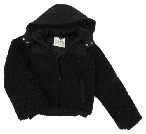 Čierna huňato/šusťáková zateplená bunda s kapucňou F&F