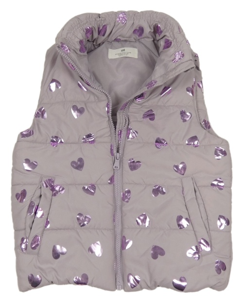 Lila šušťáková zateplená vesta so srdiečkami H&M