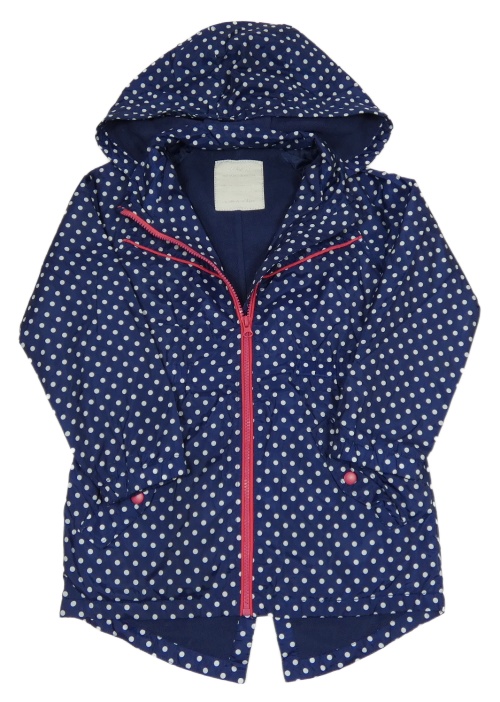 Tmavomodrá šušťáková jesenná parka s bodkami a kapucňou F&F