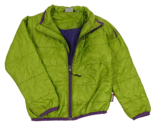 Zelená šušťáková zateplená bunda s fialovým pruhom