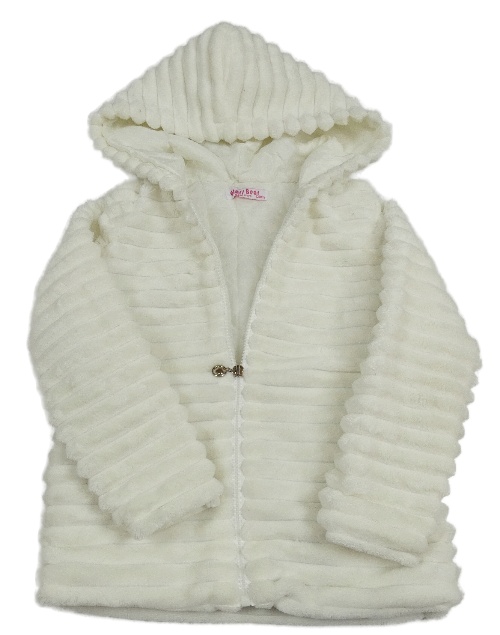 Smotanová rebrovaná plyšová zateplená bunda s kapucňou