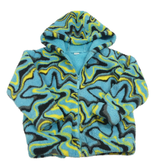 Světlemodro-žlto-sivo-čierna vzorovaná huňatá bunda s kapucňou Next