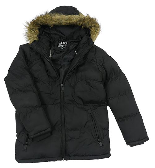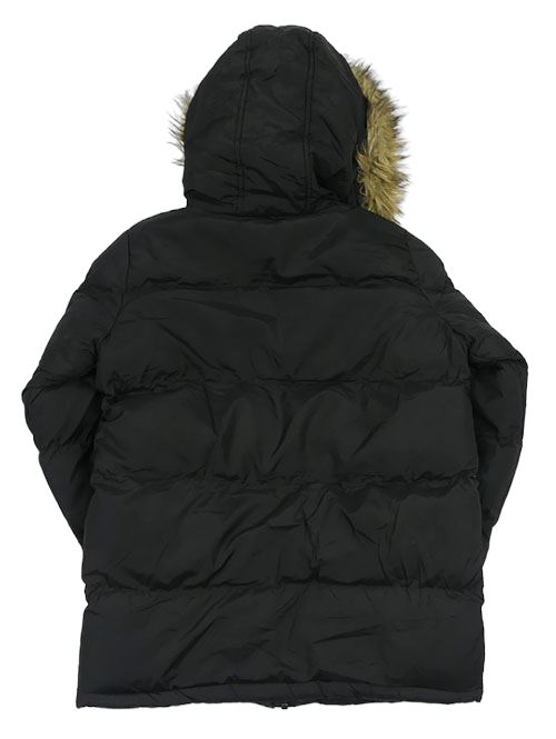 • Čierna prešívaná šušťáková zimná bunda s nášivkou a kapucňou s kožešinou BRAVE SOUL