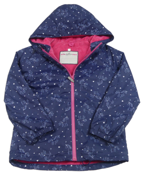 Tmavomodrá šušťáková lehce zateplená bunda s jednorožcami a kapucňou Topolino