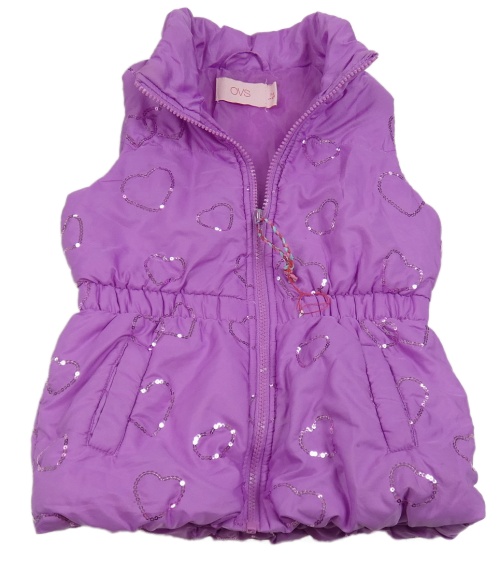 Fialová šušťáková zateplená vesta so srdíčky z flitrů OVS