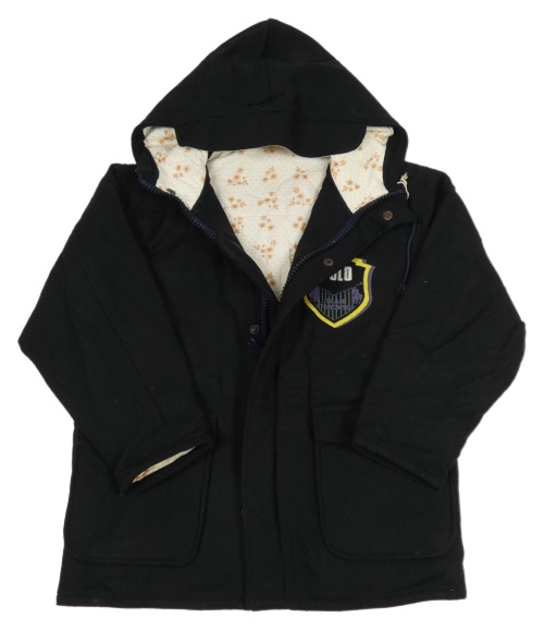 Čierna flaušová zateplená bunda s erbem a vreckami a kapucňou