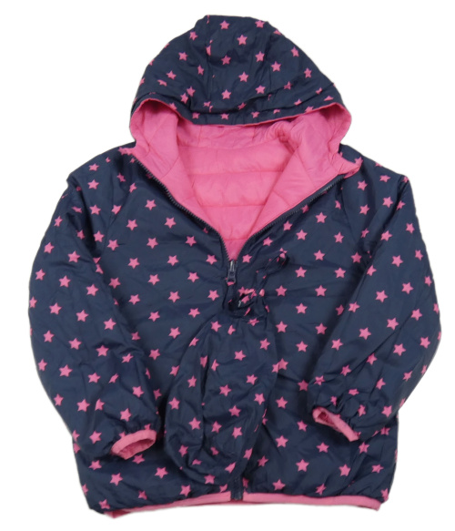 • Tmavomodrá hviezdičkovaná šušťáková zimná obojstranná bunda s kapucňou George