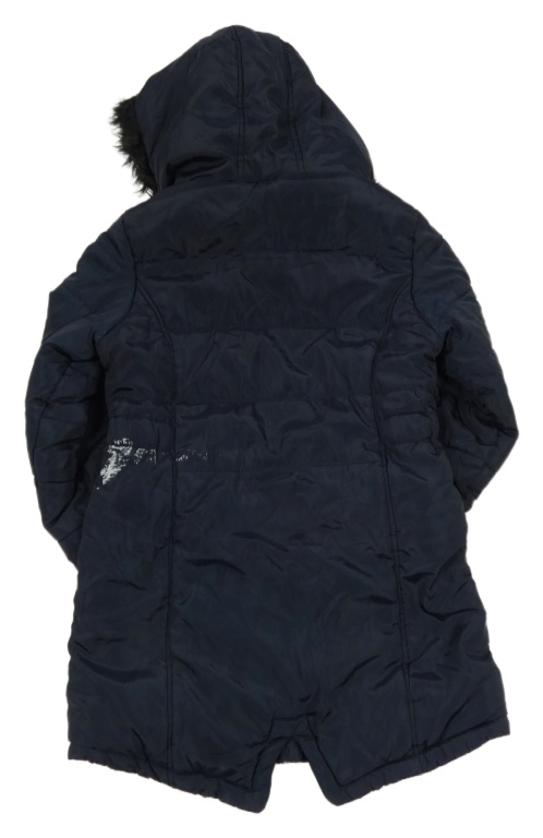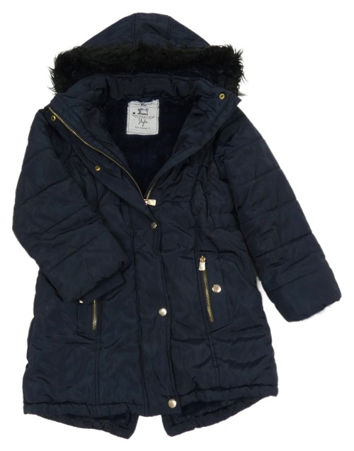 Tmavomodrá šušťáková zimná parka s kapucňou s kožešinou Tu