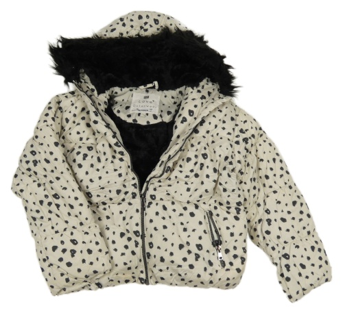 Smetanovo-čierna vzorovaná šušťáková prešívaná zimná crop bunda s kapucňou F&F