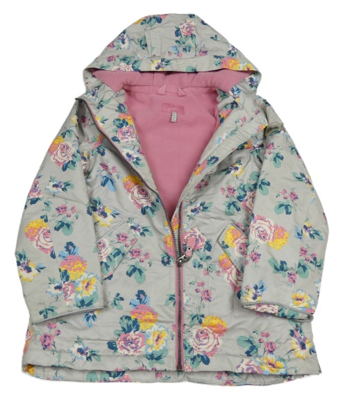Sivá šušťáková zimná parka s kvietkami a kapucňou Joules