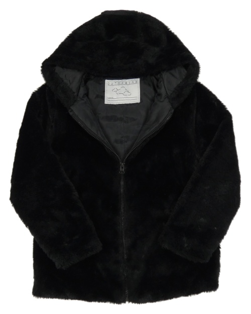 Čierna kožušinová podšitá bunda s kapucňou Tu