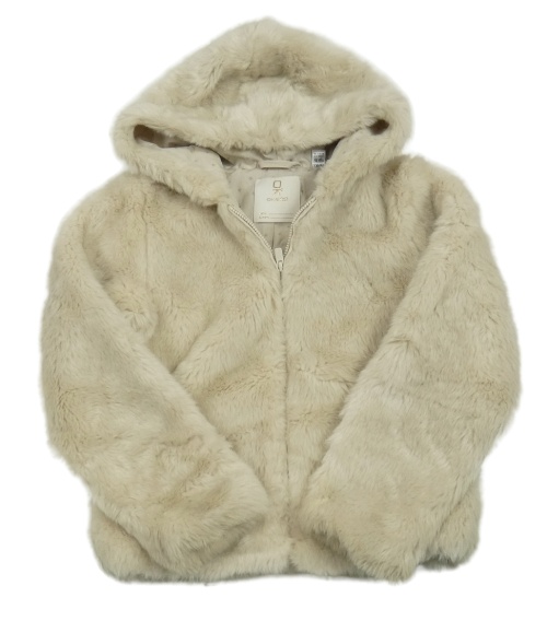 Smotanová kožušinová podšitá bunda s kapucňou Okaidi