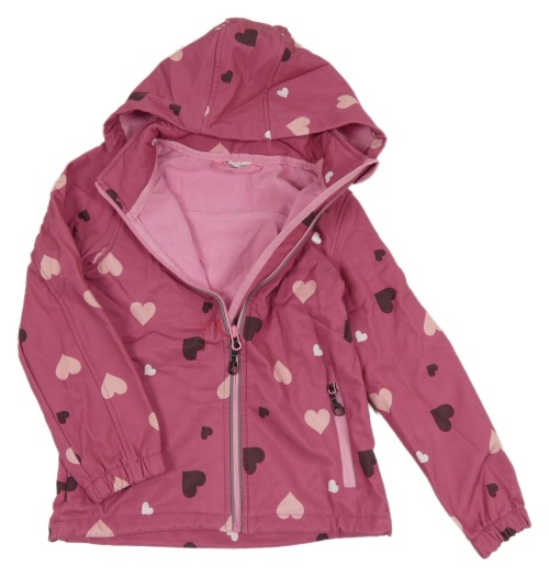 Ružová softshellová bunda so srdiečkami a kapucňou