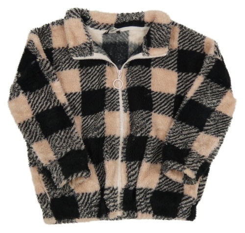 Čierno-svetloružová kockovaná huňatá bunda Pep&Co