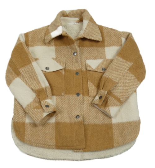 Okrovo-biela kockovaná košeľová vlnená zateplená bunda M&S