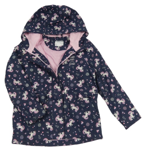 Tmavomodrá nepromokavá jarná bunda s jednorožcami a kapucňou C&A