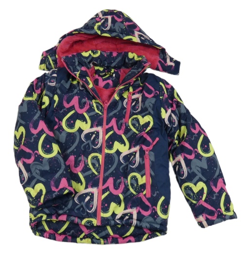 Tmavomodrá šušťáková zimná bunda so srdiečkami a kapucňou