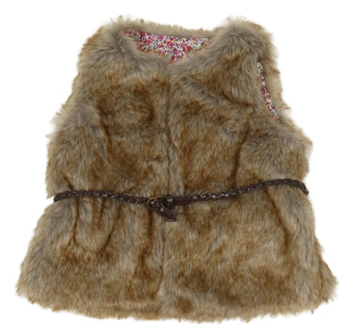 Hnedo-sivá melírovaná kožušinová podšitá vesta s opaskom