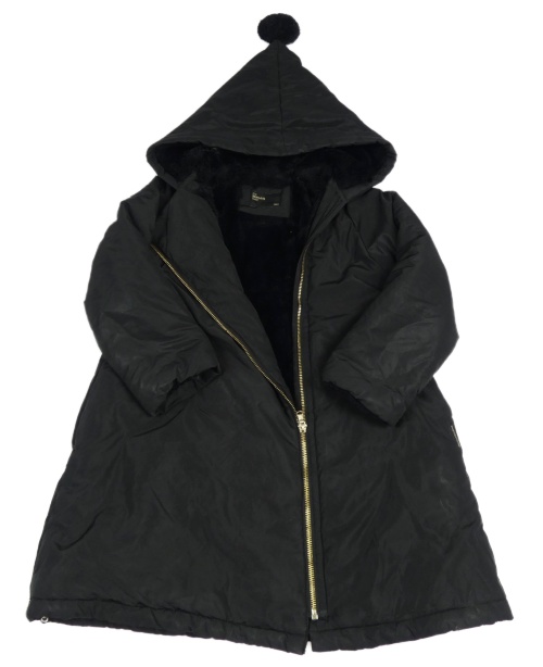Čierny šušťákový zimný kabát so zlatým zipsom a kapucňou