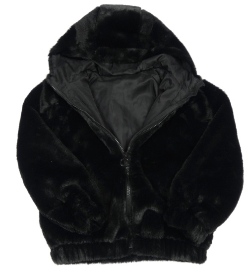 Čierna kožušinová podšitá bunda s kapucňou St. Bernard