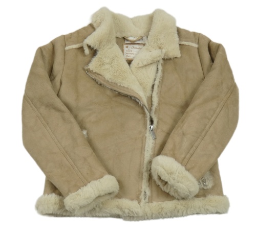 Béžová semišová zateplená bunda s kožešinovým lemem orchestra