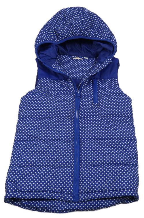 Tmavomodrá zateplená vesta s hviezdičkami a kapucňou