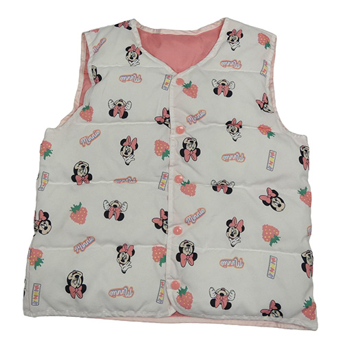 Biela šušťáková zateplená vesta s Minnie a jahodami Disney