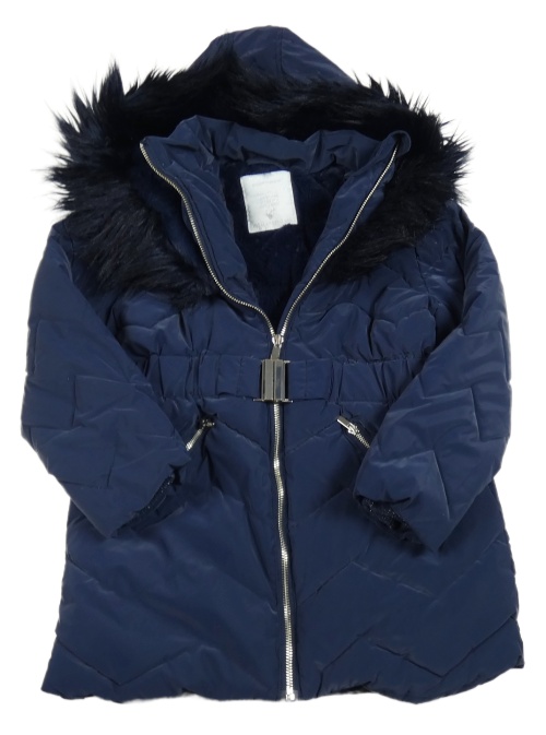 Tmavomodrá šušťáková zimná bunda s opaskom a kapucňou s kožešinou Matalan