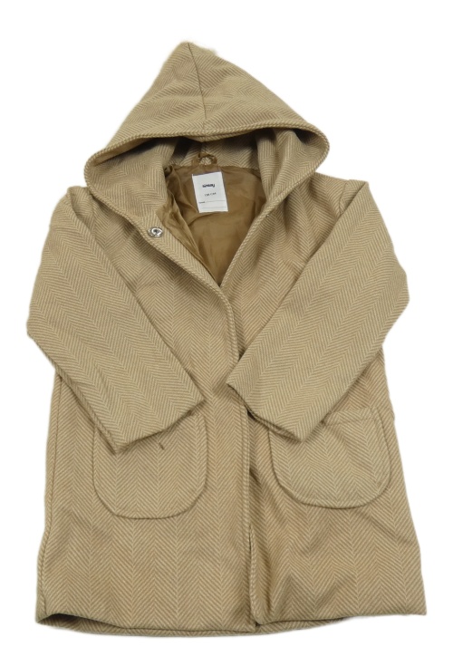 Hnedo-béžový vzorovaný flaušový podšitý kabát s kapucňou s brmbolcom sinsay