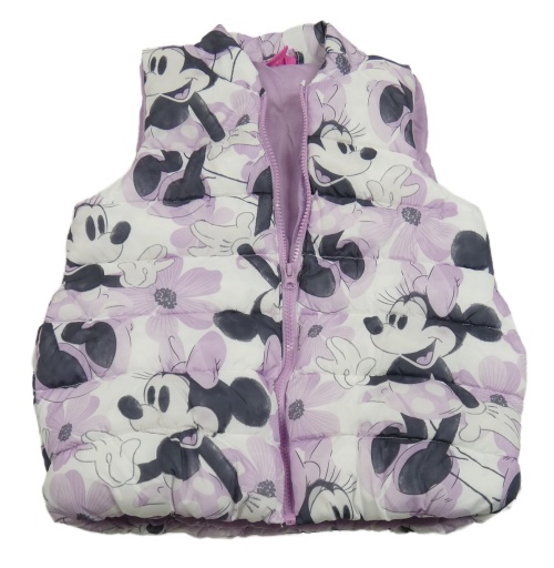 Lila-biela kvetovaná šušťáková zateplená vesta s Minnie Disney