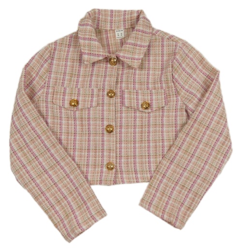 Ružovo-béžová vzorovaná úpletová crop bunda s gombíky shein