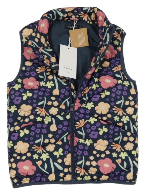 Nové - tmavomodro-farebná kvetovaná šušťáková zateplená vesta Name it