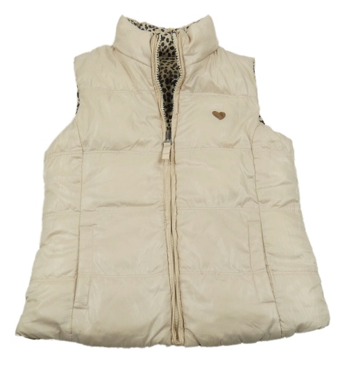 Béžová šušťáková zateplená obojstranná vesta so srdiečkom