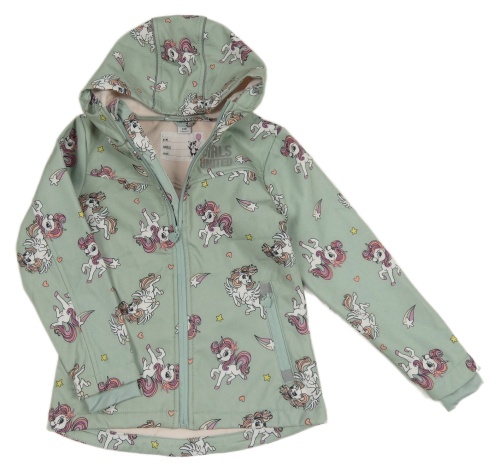 Zelená softshellová bunda s jednorožcami a kapucňou Dopodopo