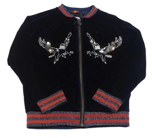 Tmavomodrá zamatová podšitá bunda s vtáčky Mini Boden